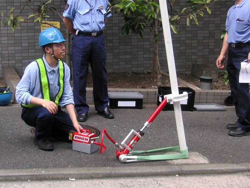 ・出力10トンの油圧ポンプを採用し、倒れた標識を強力に押し上げます。 ・作業時間は5分程度です。 ・バッテリー電動式なので、手動式や足踏み式と比較して負担を大幅に軽減。 ・滑らかな動きで、根元に亀裂が入りにくいです。 ・緊急時にはパーツの組み替えで、10トンの出力を持つジャッキになります。 ・正弦波インバーターが標準付属品。車載バッテリーから屋外でも充電できます。 ・本体重量は19kg、格納箱外寸は47×36×33(p)です。 |