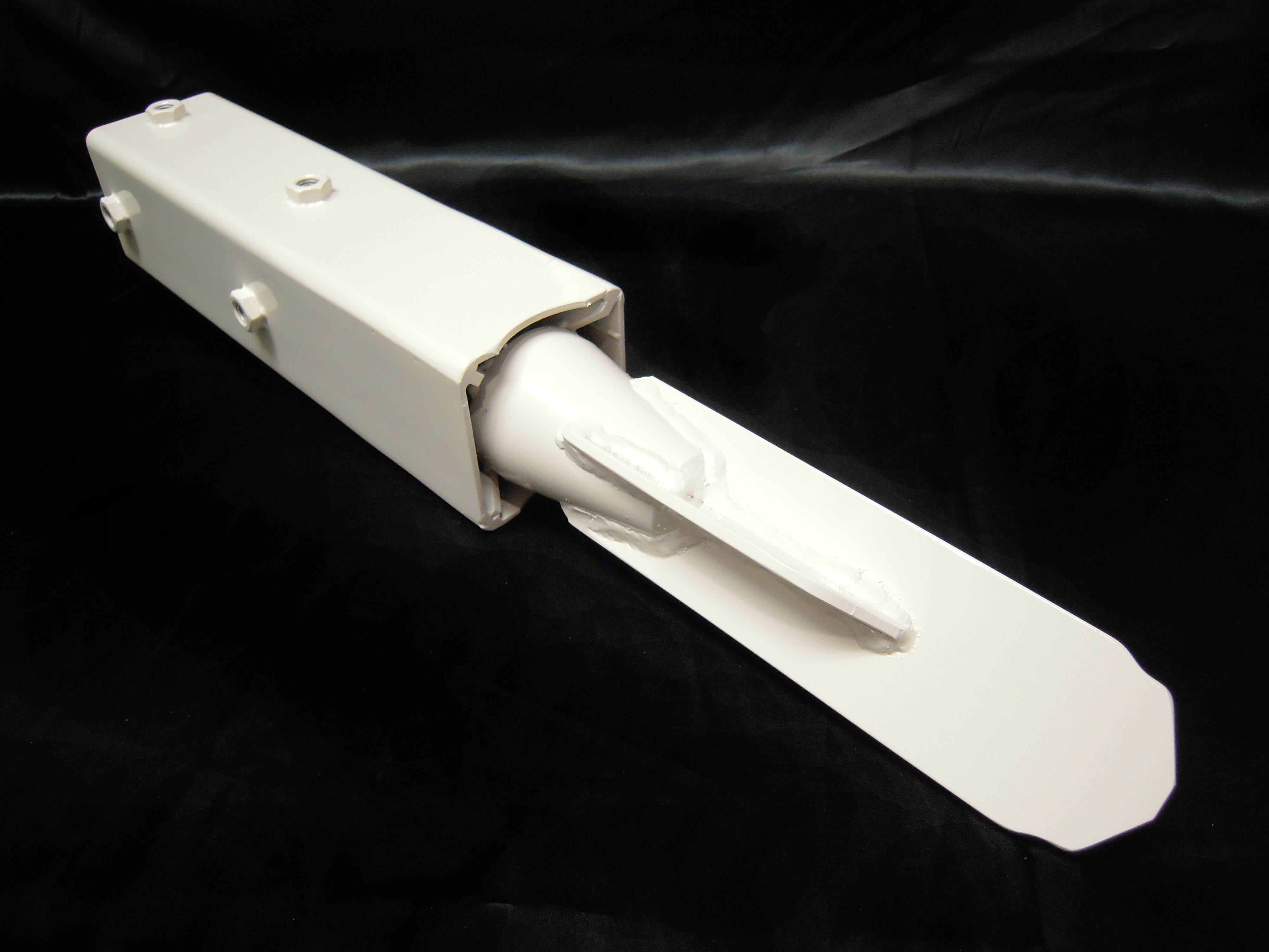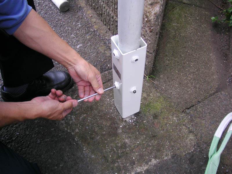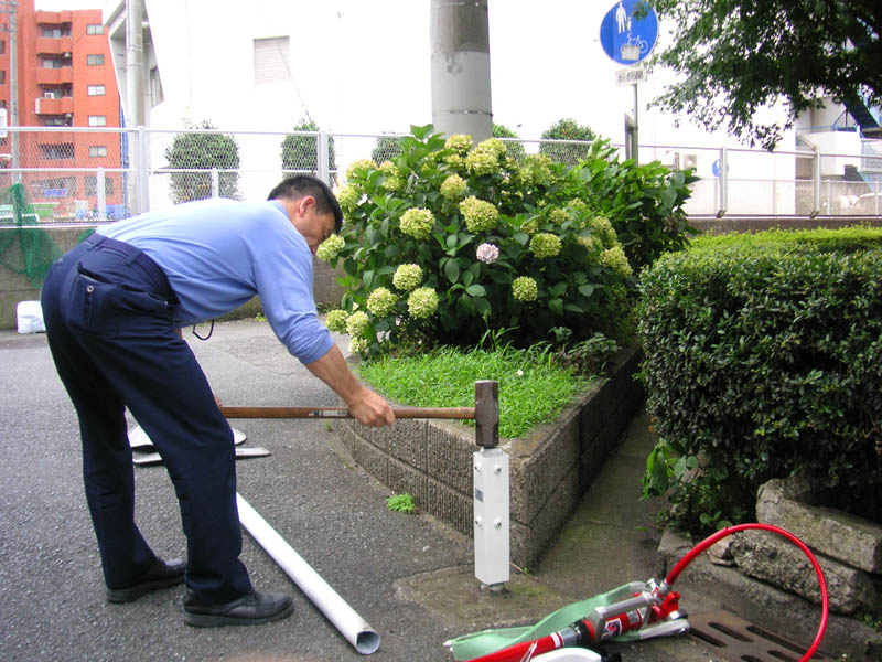 ・根元から折れた標識柱が、作業時間5分程度でしっかりと直立します。 ・正方形の開口部分は、標識柱の潰れた先端にしっかりと収まり回転を防止。 ・打込むための当社独自の先端部分が高い食いつき性や保持性などを確保。 ・新開発。打ち込み時に標識柱の口部分をぴったり塞ぐ栓パーツを採用し、雨水などの流入・蓄積を防ぎます。 ・全長は54cm、地上部分は31cm、重量は5.2kgです。 |
